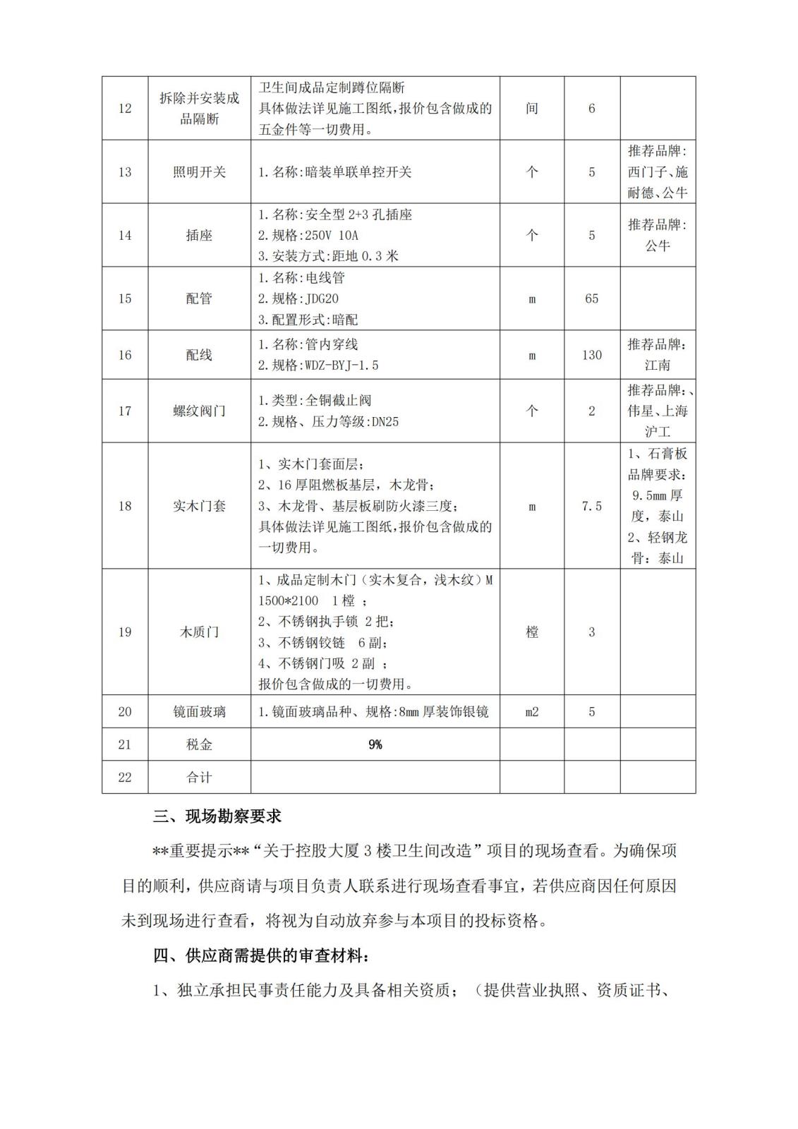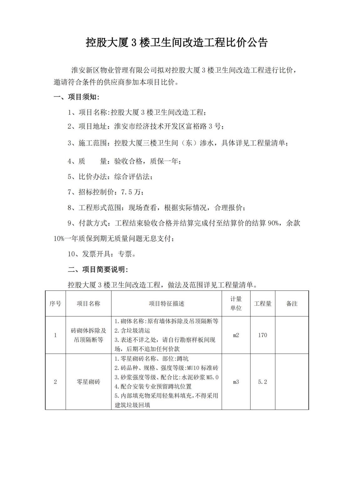 控股大厦3楼卫生间改造工程比价公告
