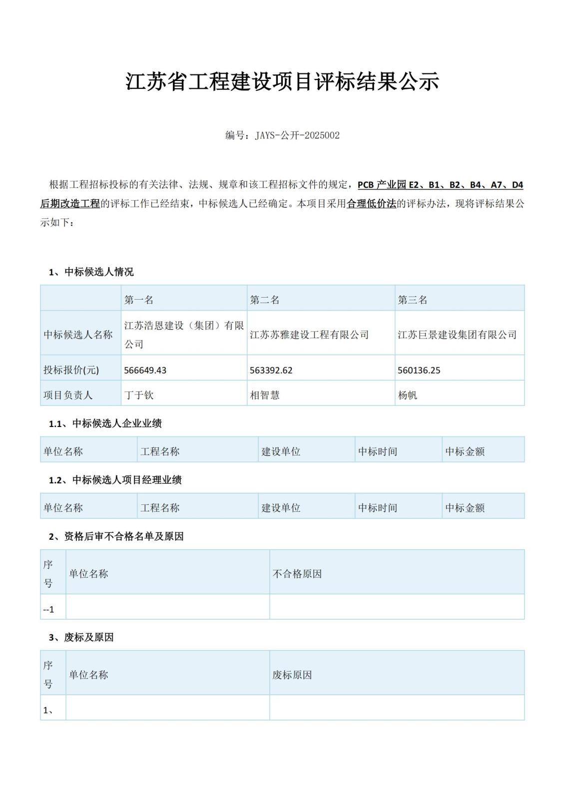 江苏省工程建设项目评标结果公示